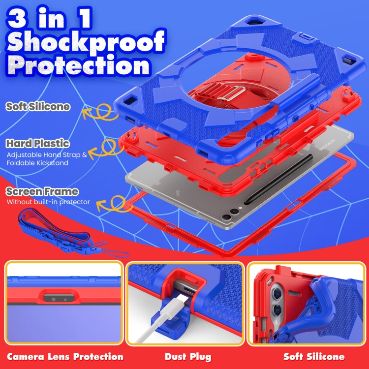 Funda para Tablet Spider para Samsung Galaxy Tab S10+ / S9+ / S9 Fe+ Soporte Giratorio Agarre Manual (Rojo y Azul)