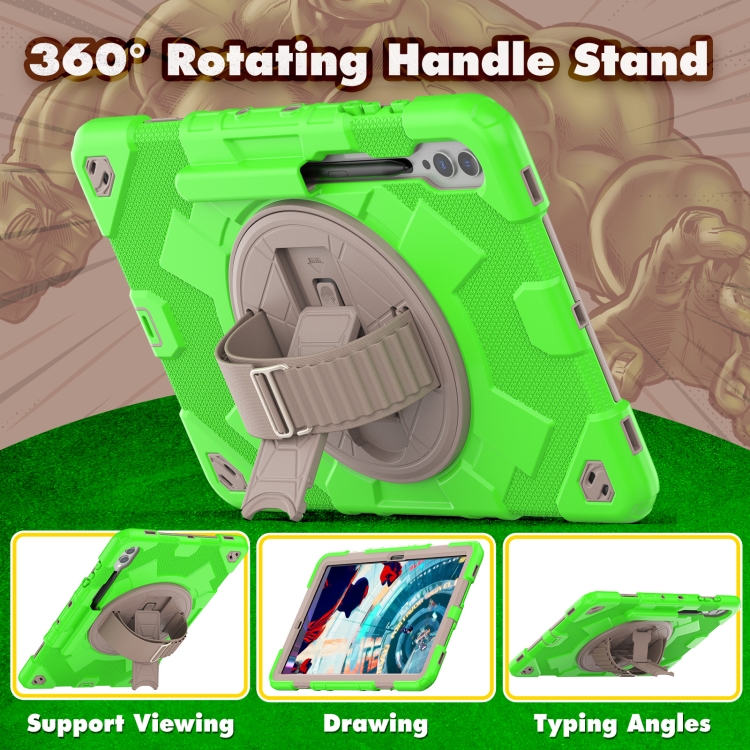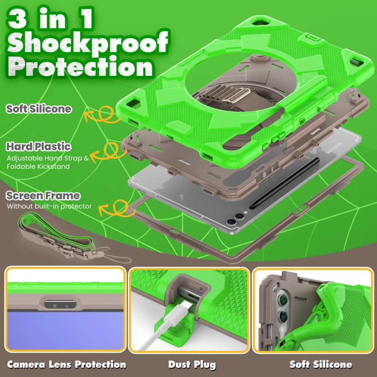 Funda para Tablet Spider con Soporte Giratorio y Agarre Manual para Samsung Galaxy Tab S10+ / S9+ / S9 Fe+ (Verde Café)