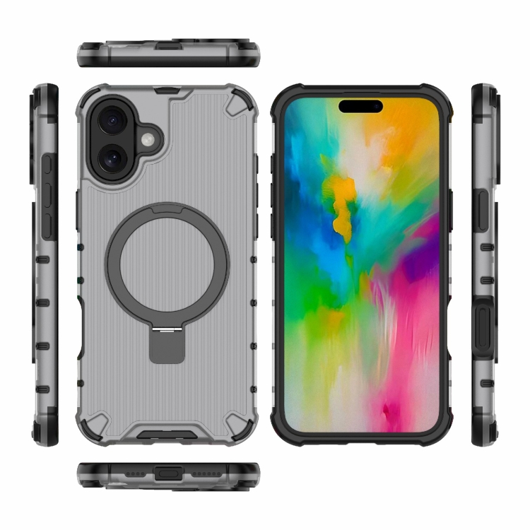 Funda para Teléfono iPhone 16 Plus Soporte de Rejilla a Prueba de Golpes (Negro Transparente)