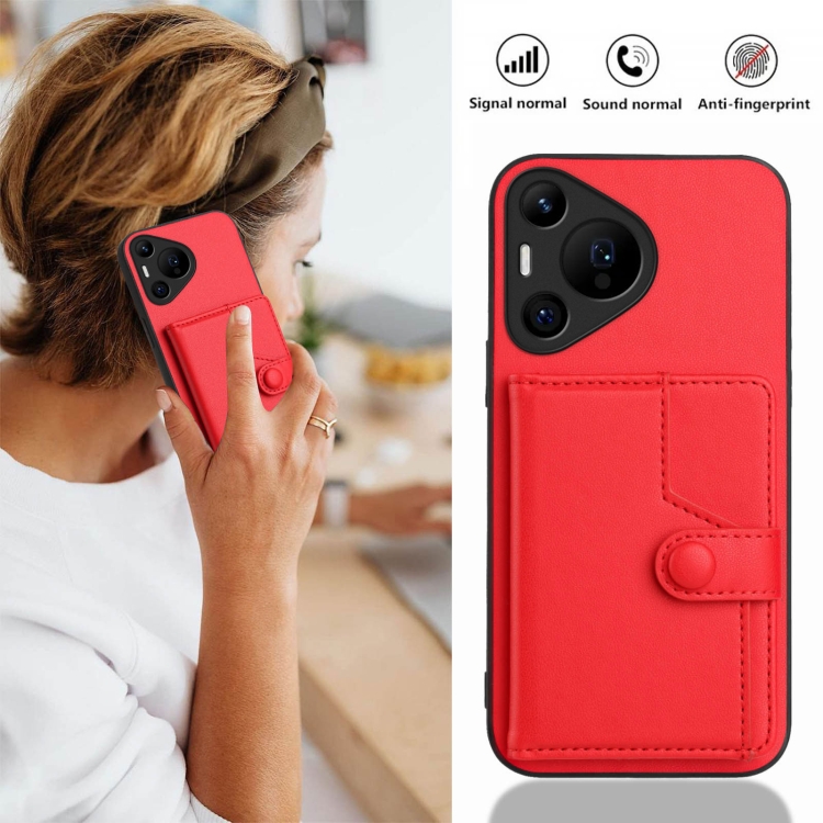 Funda Antirrobo con Botón y Tarjetero para Huawei Pura 70 Pro (Roja)