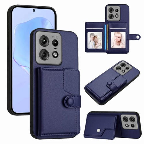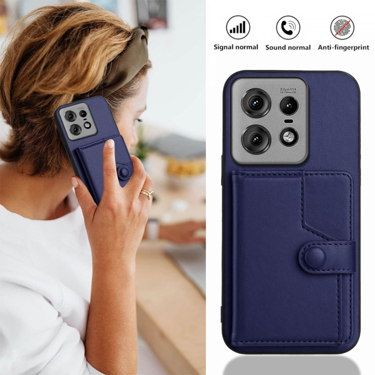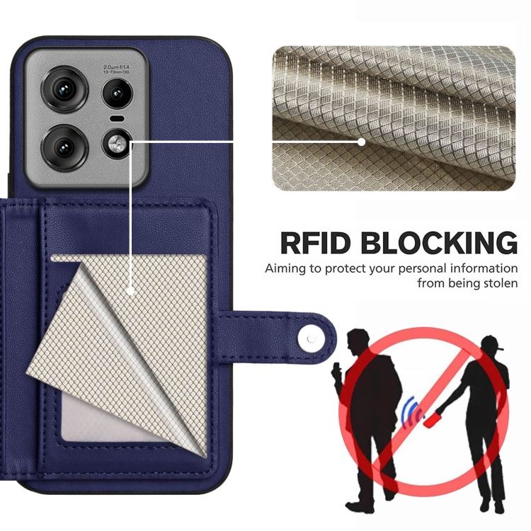 Funda Antirrobo para Motorola Edge 50 Pro con Botón y Tarjetero RFID (Azul)