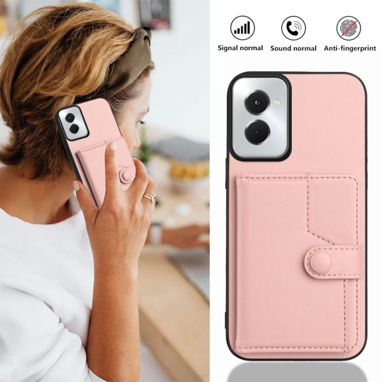 Funda Antirrobo con Botón y Tarjetero RFID para Motorola Moto G Power 5G (2024) (Rosa)