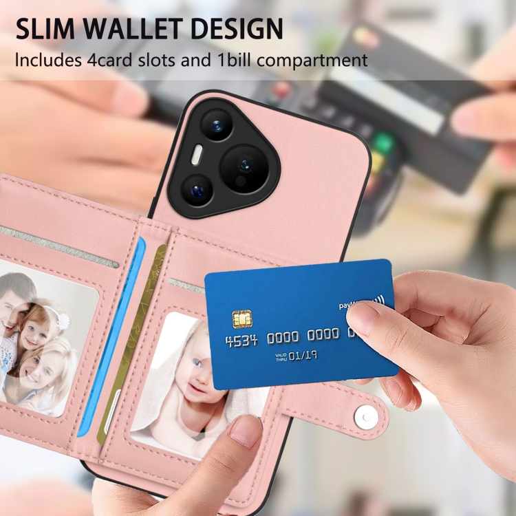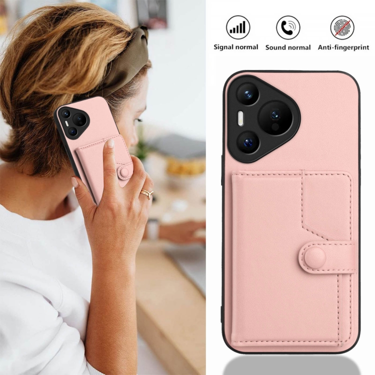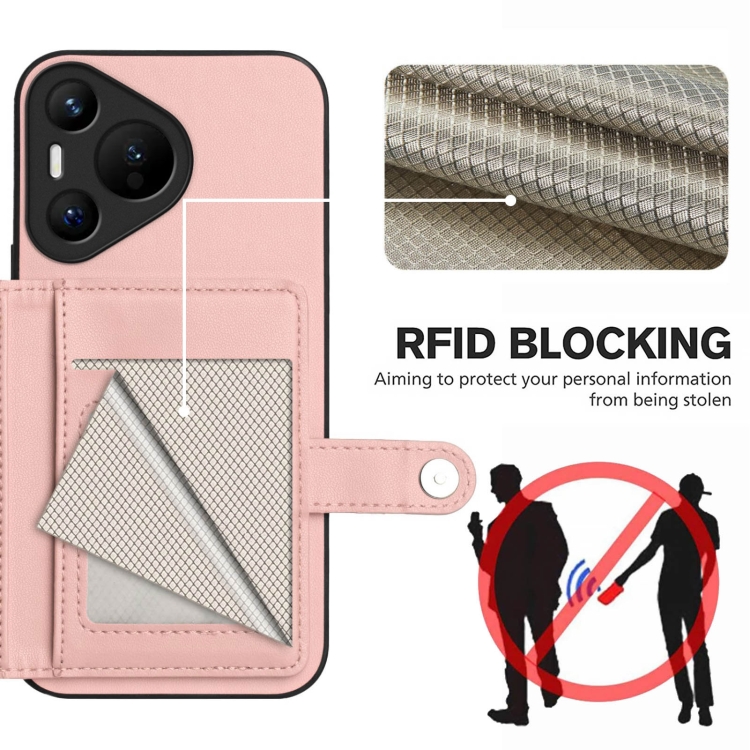Funda para Teléfono Antirrobo con RFID y Tarjetero 70 Botones para Huawei Pura (Rosa)