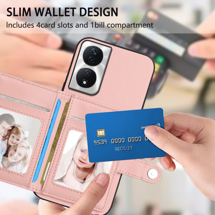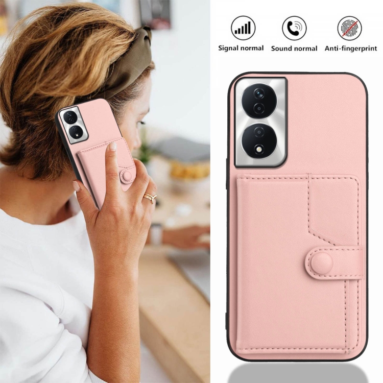Funda Antirrobo Rfid con Botón para Tarjeta para Honor X7B Play 8T 5G (Rosa)