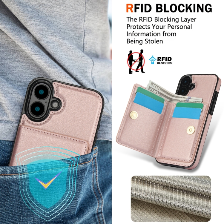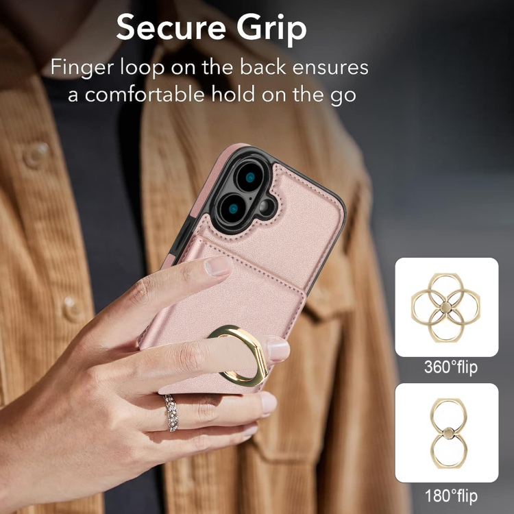 Funda para Teléfono con Anillo y Tarjeta Antirrobo Rfid para iPhone 16 (Oro Rosa)