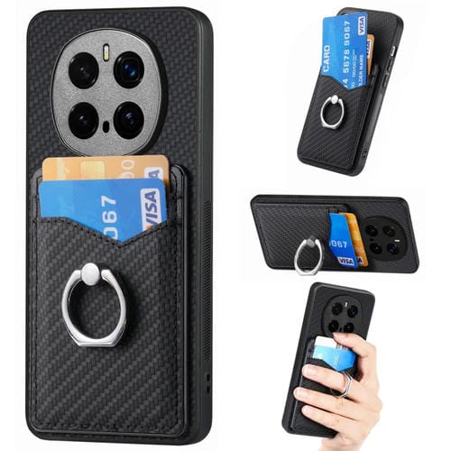 Funda para Teléfono Honor Magic7 Pro con Anillo y Billetera de Fibra de Carbono (Negro)