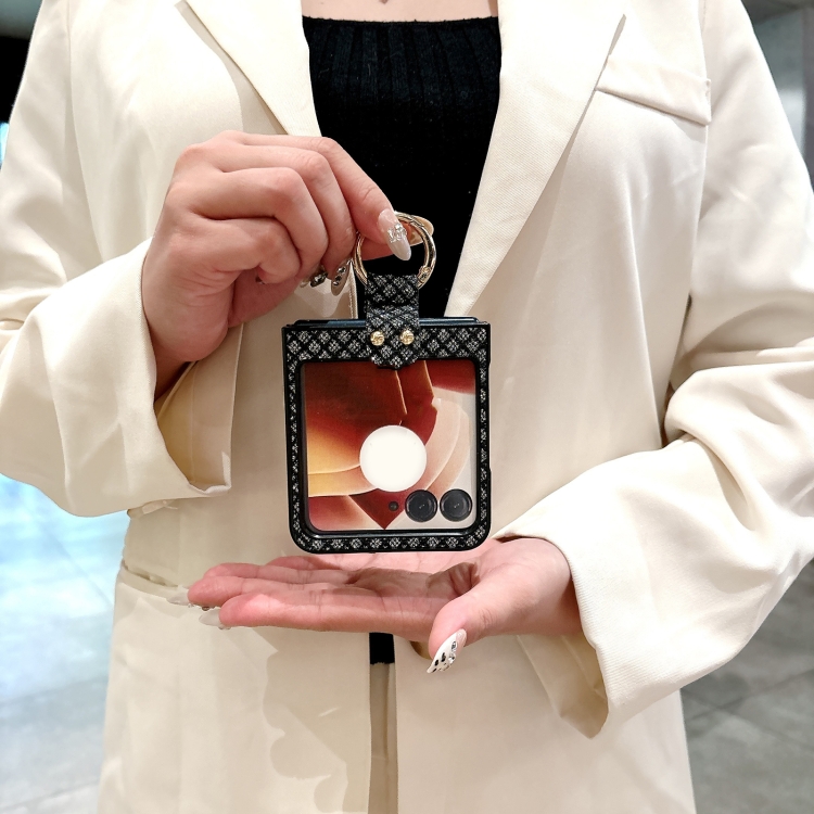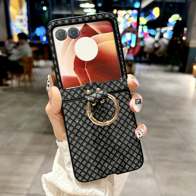Funda para Teléfono Motorola Razr 50 Ultra con Anillo y Diseño de Rombos y Diamantes (Negro)