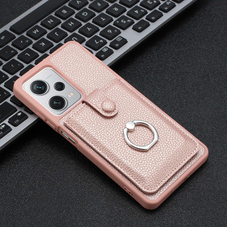 Funda para Teléfono con Anillo y Diseño de Textura de Lichi para Redmi Note 12 Pro 5G (Oro Rosa)