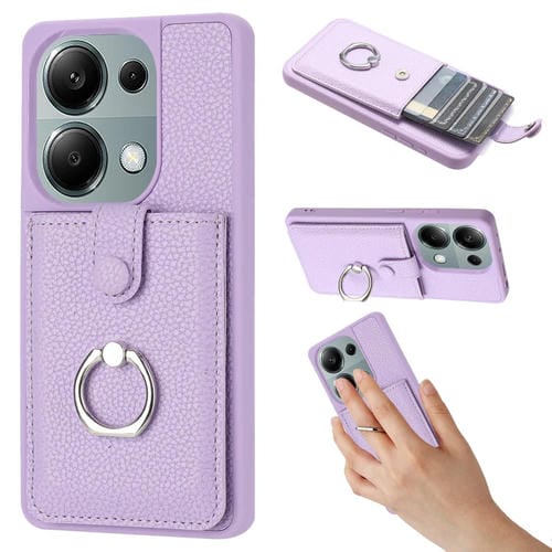 Funda para Teléfono con Anillo y Diseño de Textura de Lichi para Redmi Note 13 Pro 4G (Morado)