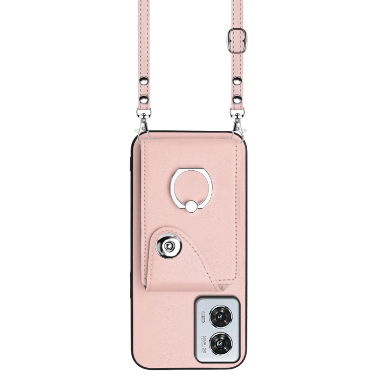 Funda para Teléfono Motorola Edge 50 Fusion Global con Aro, Tarjetero y Cordón Largo (Rosa)