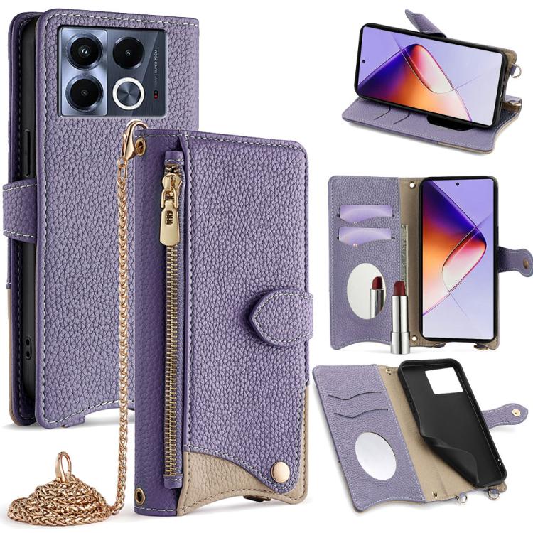 Funda para Teléfono Infinix Note 40 5G con Cadena Cruzada Piel de Lichi y Cola de Pez (Morado)