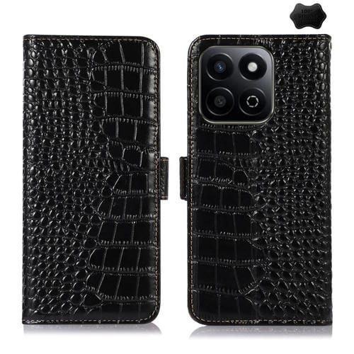 Funda para Teléfono Honor Play 60 Plus/200 con Piel de Vaca y Diseño Cocodrilo (Negra)