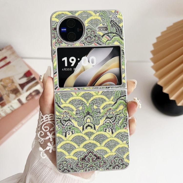 Funda para Teléfono con Cobertura Total con Bordado de Nubes Propicias para Vivo X Flip (Verde)