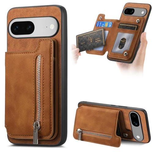 Funda para Teléfono con Cremallera Magsafe Retro para Google Pixel 7A (Marrón)
