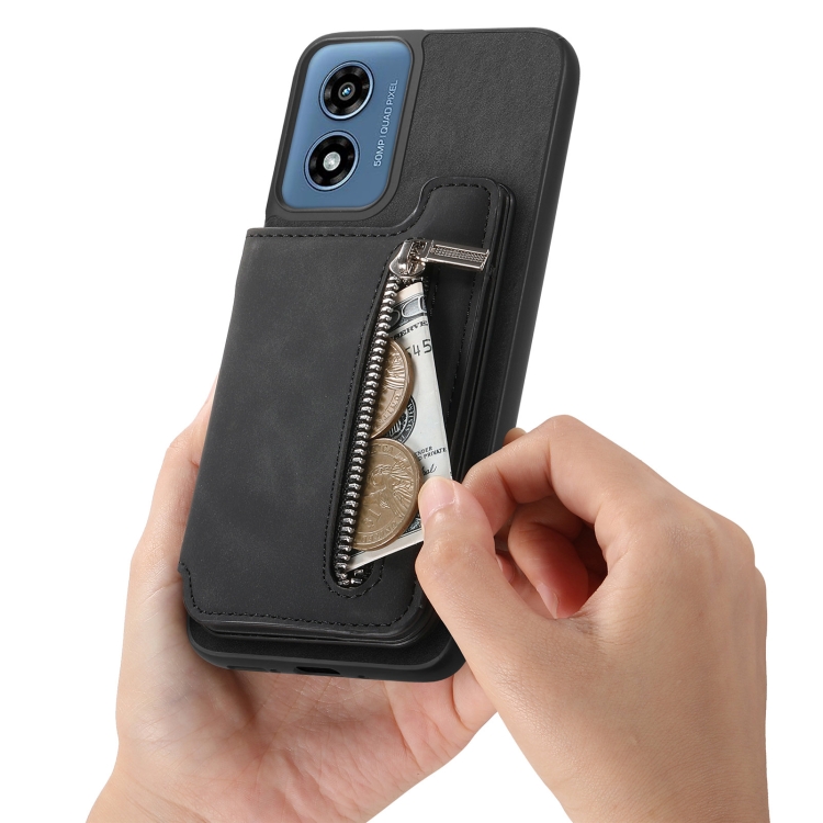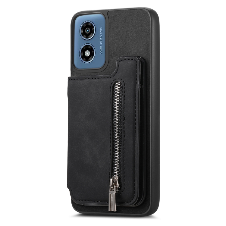 Funda para Teléfono Motorola Moto G Play 2024 4G con Cremallera Magsafe Retro (Negra)