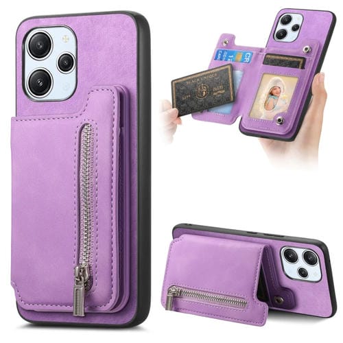 Funda para Teléfono con Cremallera Magsafe Retro para Redmi 12 / Note 12R / Poco M6 Pro 5G (Morado)