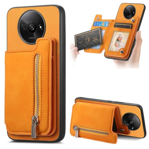 Funda para Teléfono con Cremallera Magsafe Retro para Redmi A3, TaRJetero, Cartera (Amarillo)