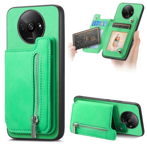 Funda para Teléfono con Cremallera Magsafe Retro para Redmi A3, TaRJetero, Cartera (Verde)
