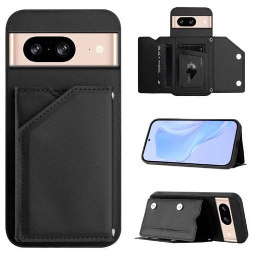Funda para Teléfono Google Pixel 8 Skin Feel con 4 Ranuras para Tarjetas y Correa para Muñeca (Negra)