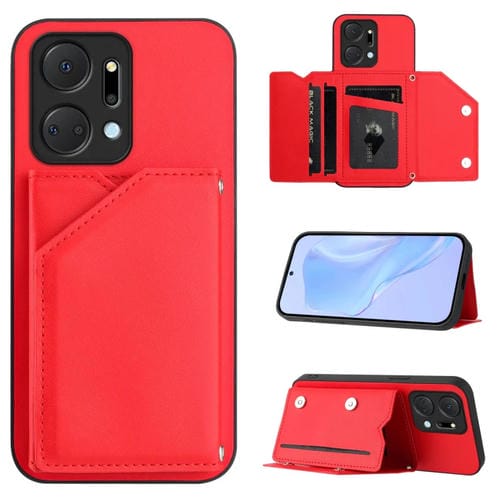Funda para Teléfono Honor X7A Play7T con 4 Ranuras para Tarjetas y Correa (Rojo)