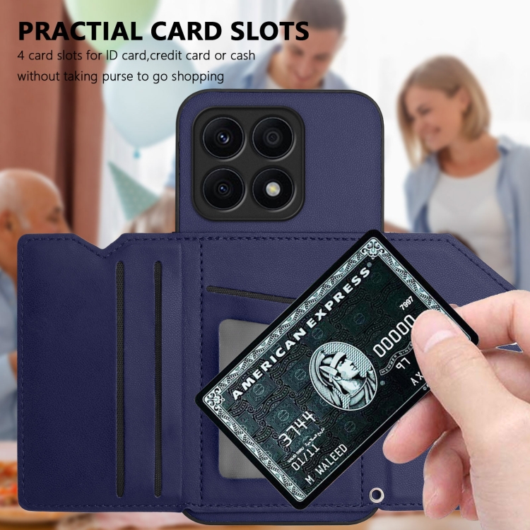 Funda para Teléfono Honor X8A Skin Feel con 4 Ranuras para Tarjetas y Correa (Azul)