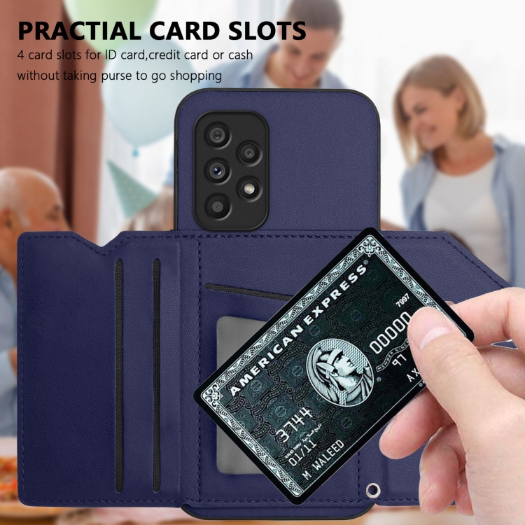 Funda para Teléfono Samsung Galaxy A53 5G con 4 Ranuras para Tarjetas y Correa para Muñeca (Azul)