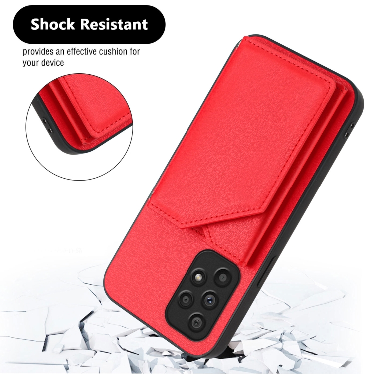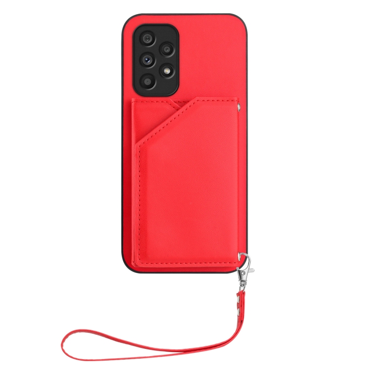 Funda para Teléfono Samsung Galaxy A53 5G Skin Feel con 4 Ranuras para Tarjetas y Correa para Muñeca (Rojo)
