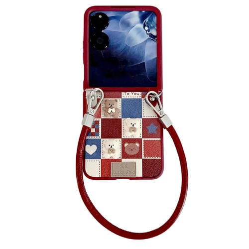 Funda para Teléfono con Diseño de Osito de Peluche y Correa para la Muñeca para Xiaomi Mix Flip (Rojo)