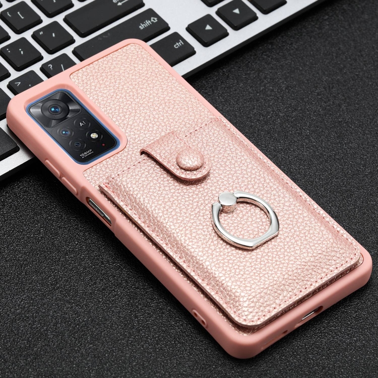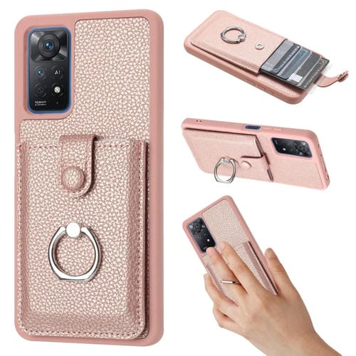 Funda para Teléfono con Diseño de Textura de Lichi para Redmi Note 11 Pro 4G, con Soporte para Anillo y Diseño de Tarjeta (Oro Rosa)
