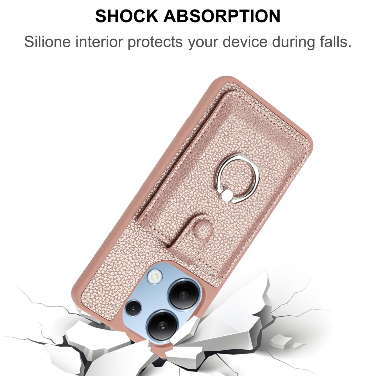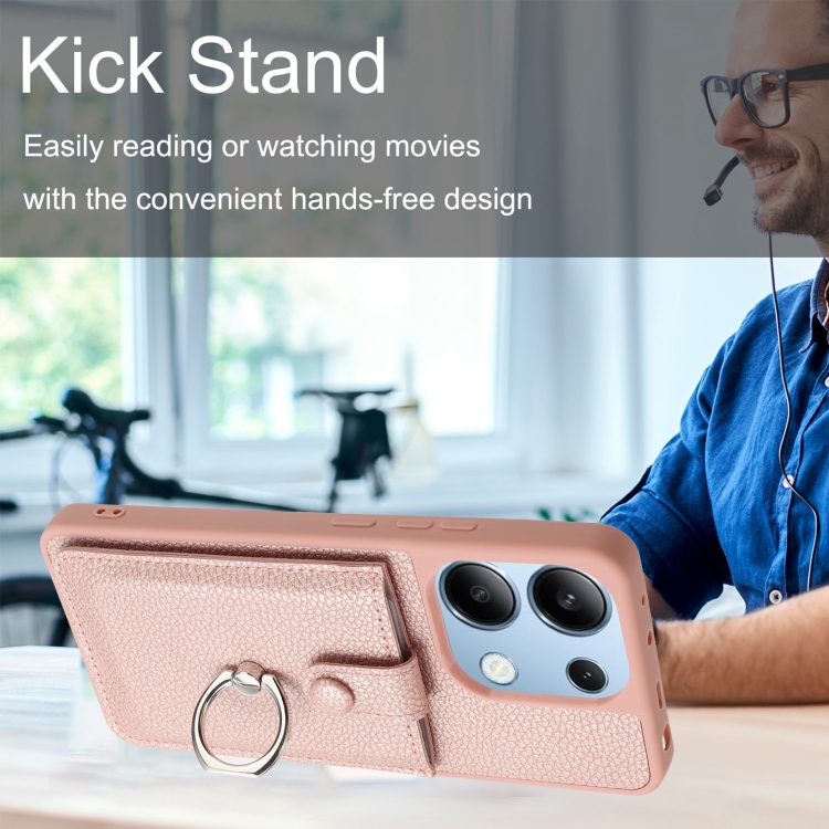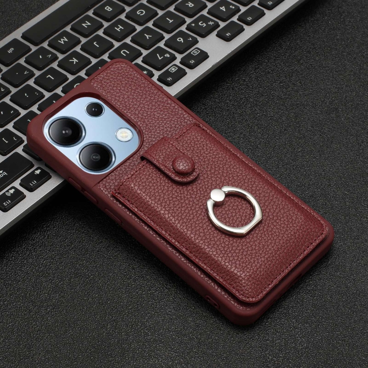 Funda para Teléfono con Diseño de Textura de Lichi para Redmi Note 13 4G, con Soporte para Anillo y Diseño de Tarjeta (Rojo Vino)
