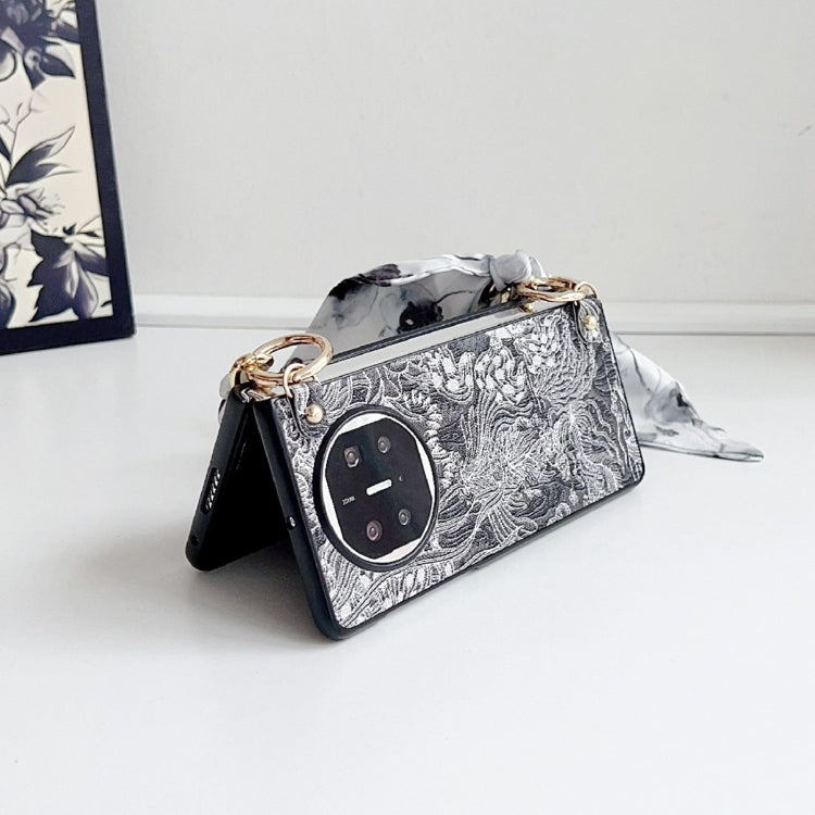 Funda para Teléfono Huawei Mate X3/X5 Bordado DIY Cobertura Total con Bufanda y Pulsera (Negra)