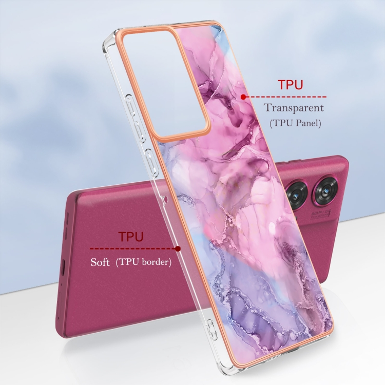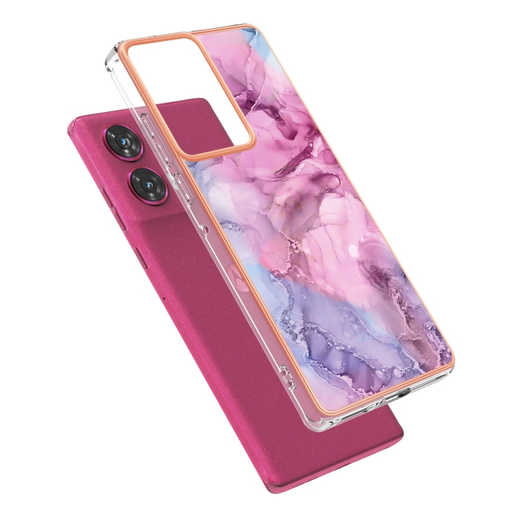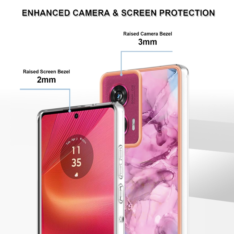 Funda para Teléfono Motorola Edge 50 Fusion con IMD Doble Cara y Galvanoplastia Mármol (Rosa)
