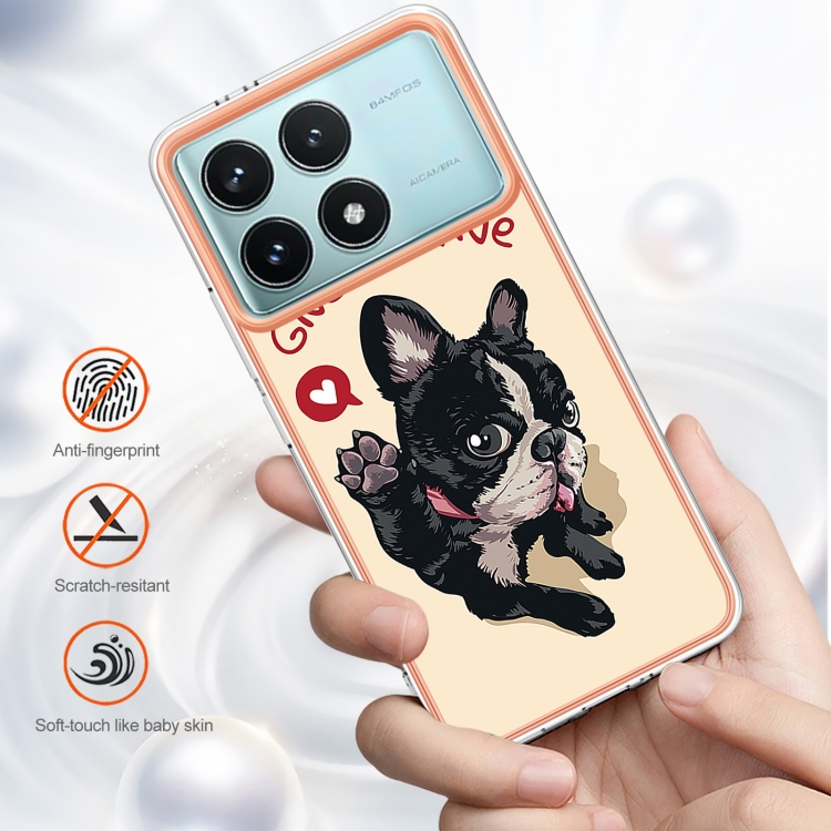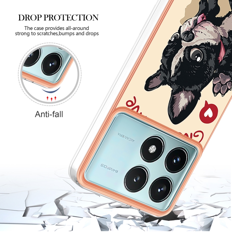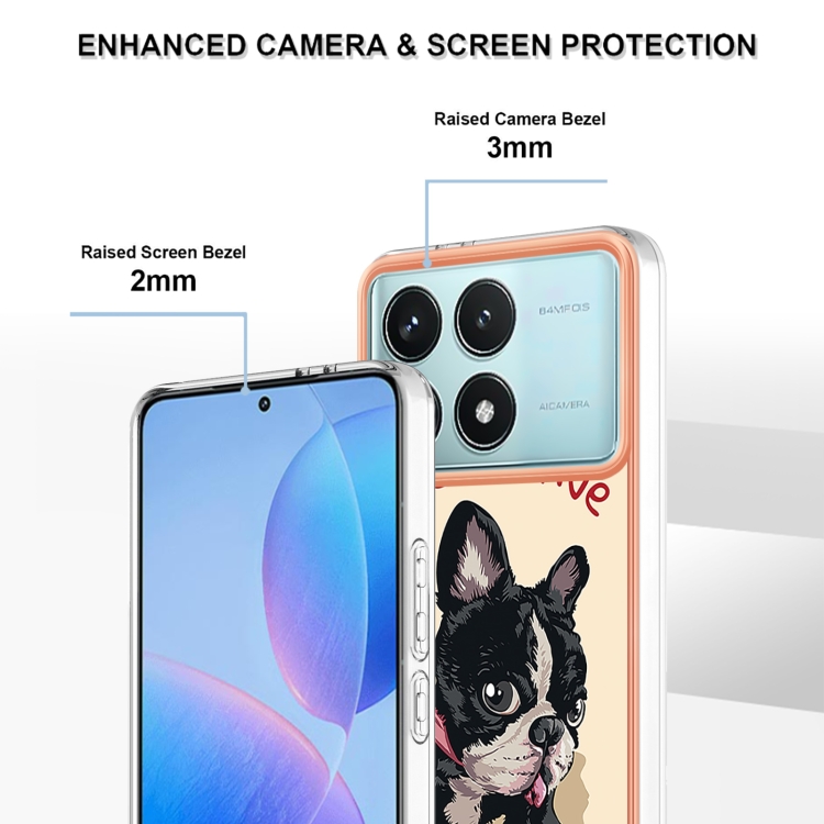 Funda para Teléfono con Imd de Doble Cara con Galvanoplastia de Mármol para Xiaomi Poco F6 Pro 5G (Perro de la Suerte)