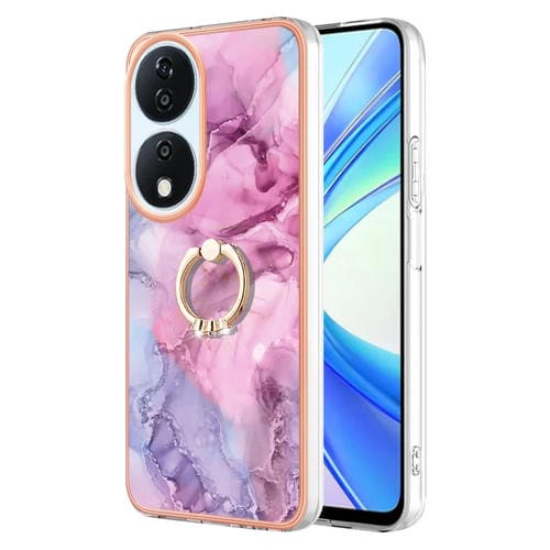 Funda para Teléfono Honor X7B 4G/5G con Imd Doble Cara Galvanoplastia Mármol y Anillo (Rosa)