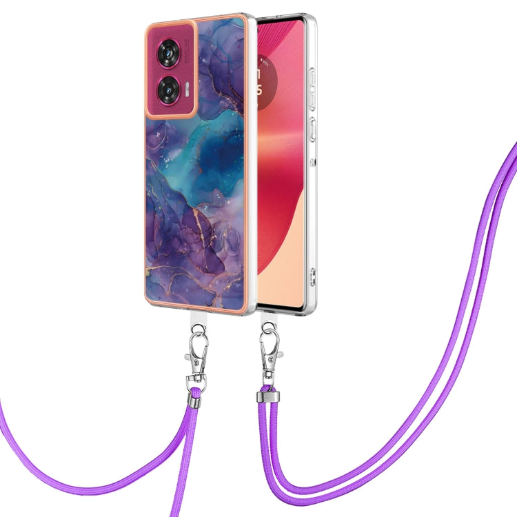 Funda para Teléfono Motorola Edge 50 Fusion con Imd Doble Cara Galvanoplastia Mármol y Cordón (Púrpura)