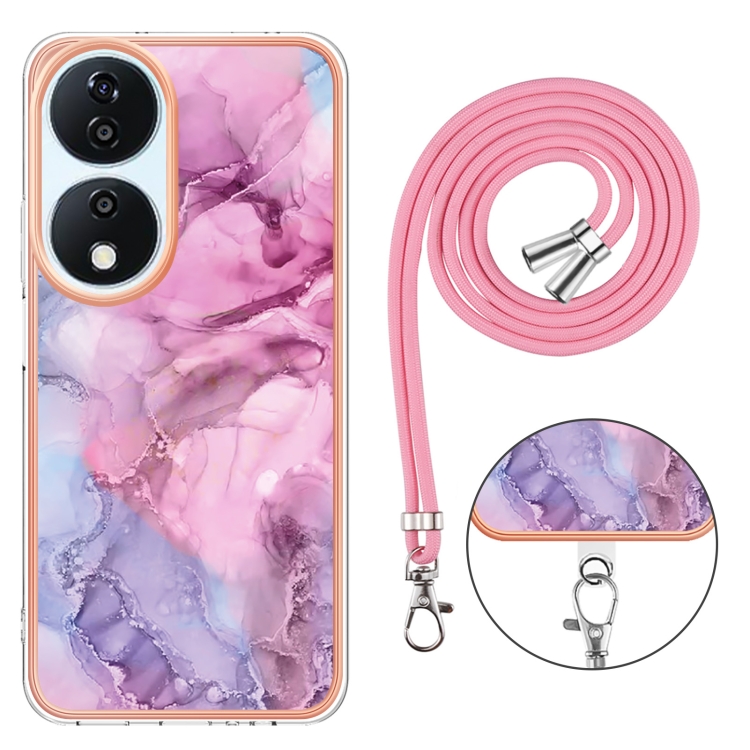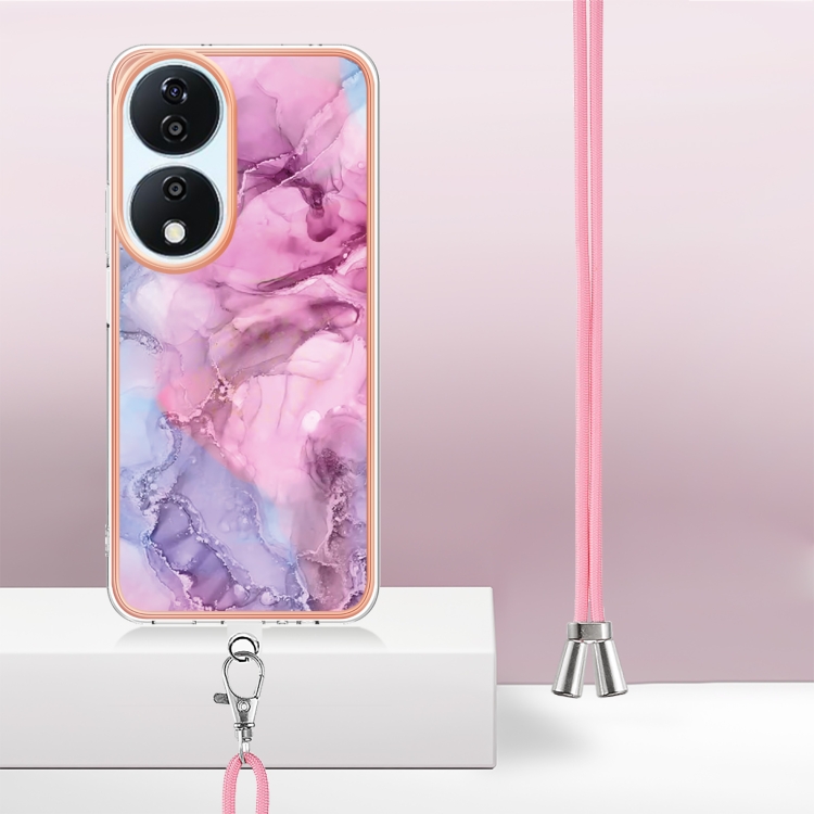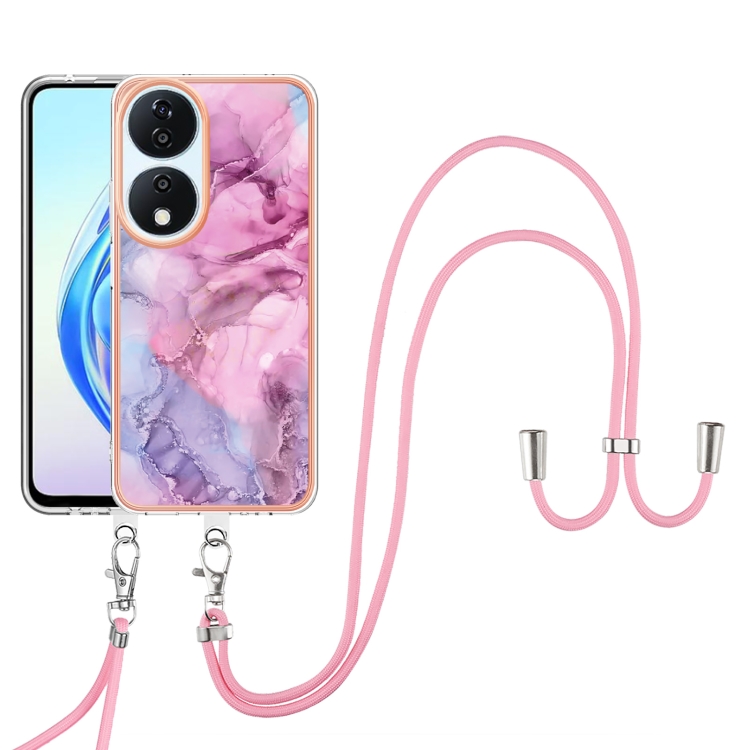 Funda para Teléfono Honor X7B 4G/5G con Imd Doble Cara y Revestimiento Mármol (Rosa)