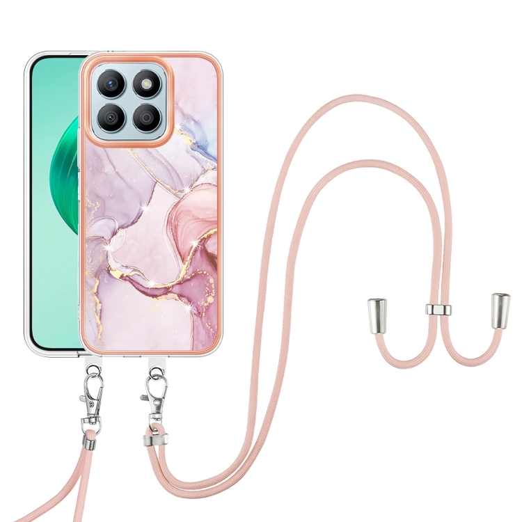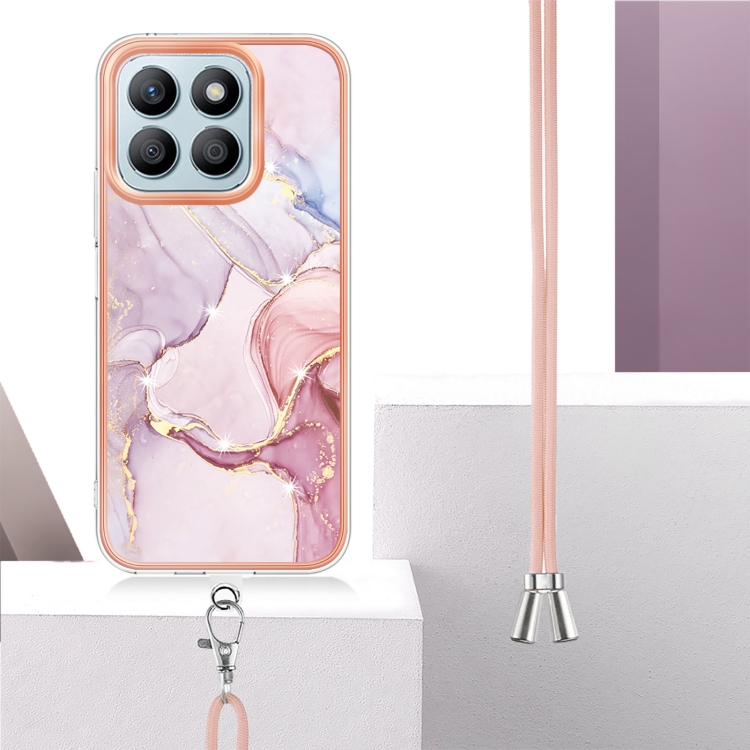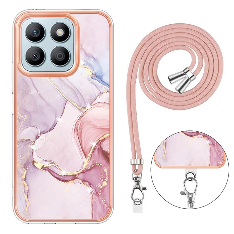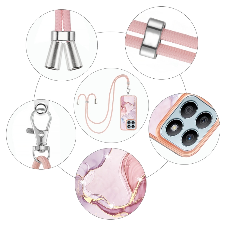 Funda para Teléfono Honor X8B con Imd Doble Cara y Revestimiento Mármol Galvanizado con Cordón (Oro Rosa)