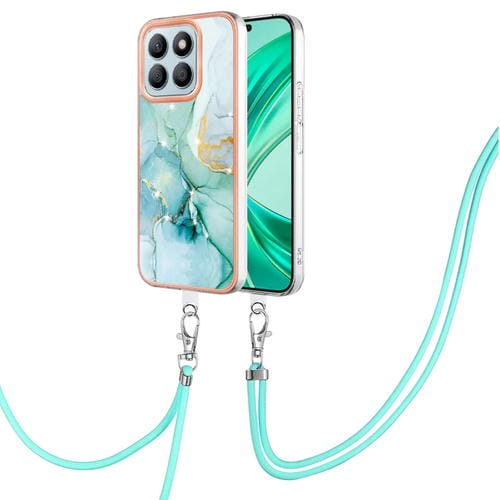 Funda para Teléfono Honor X8B con Imd Doble Cara y Revestimiento Mármol Galvanizado con Cordón (Verde)