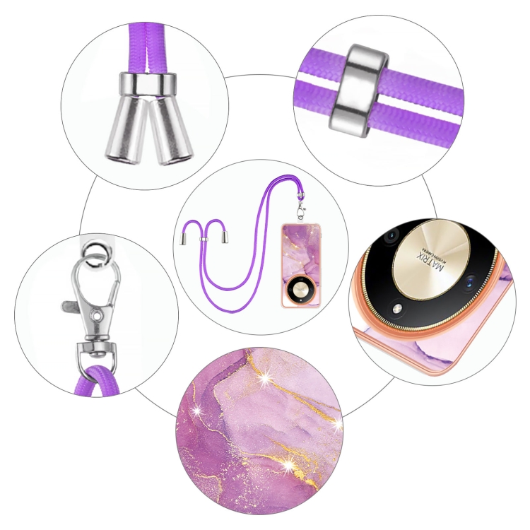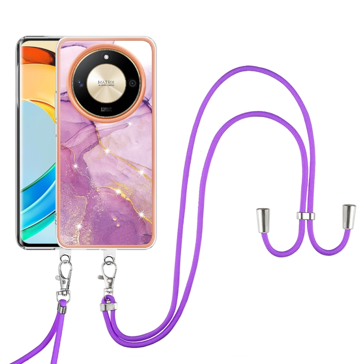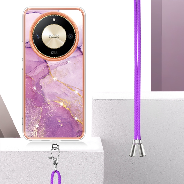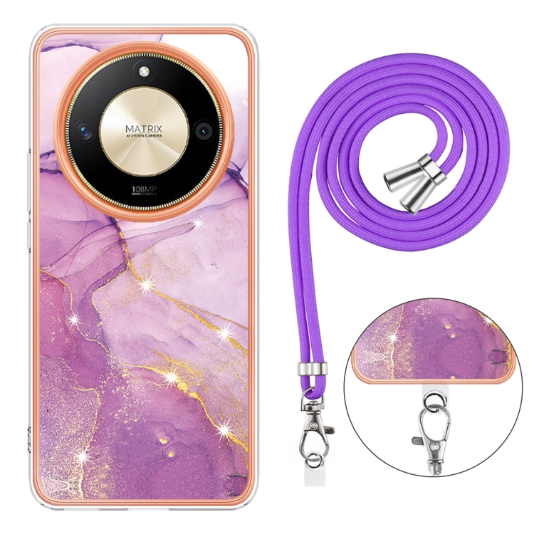 Funda para Teléfono Honor X9B con Imd Doble Cara y Revestimiento Mármol Galvanizado con Cordón (Morado)
