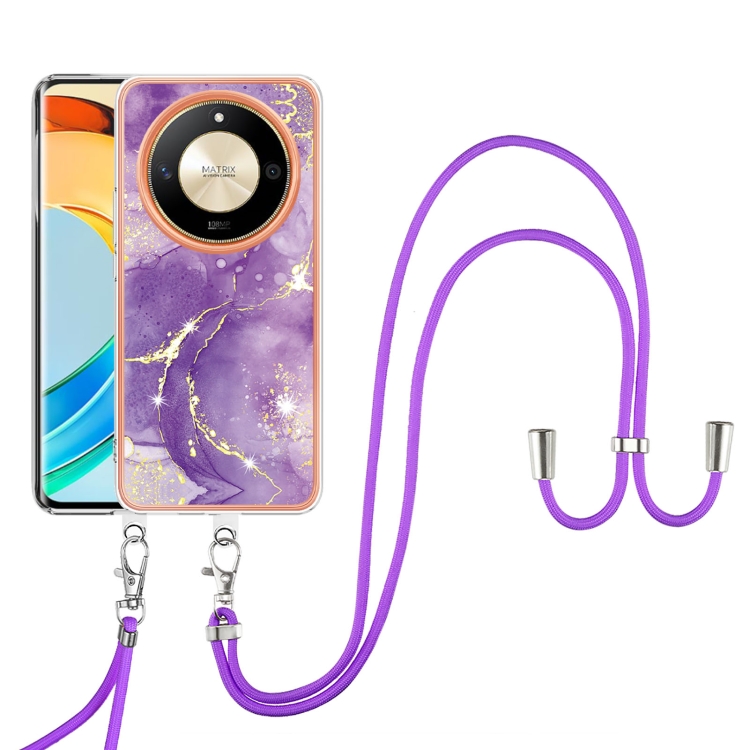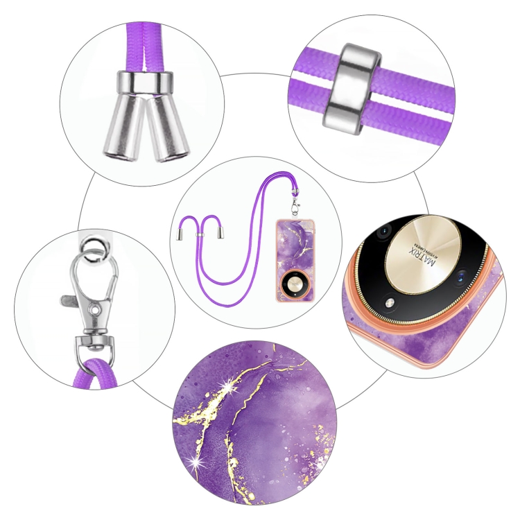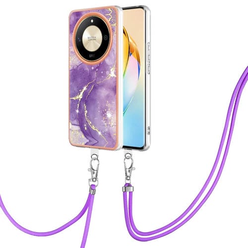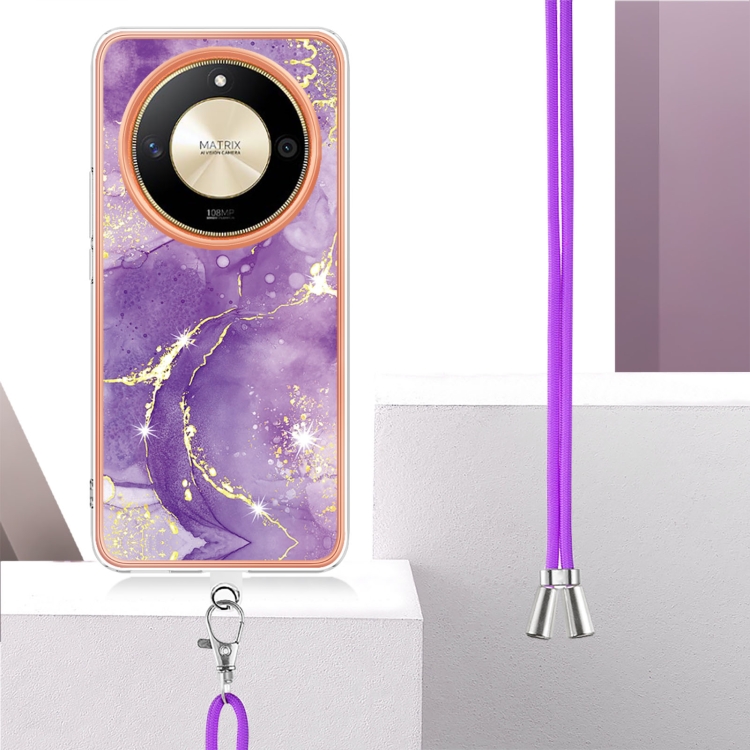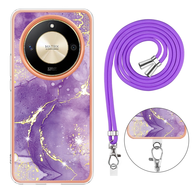 Funda para teléfono Honor X9B con IMD doble cara y revestimiento mármol galvanizado con cordón (Morado)