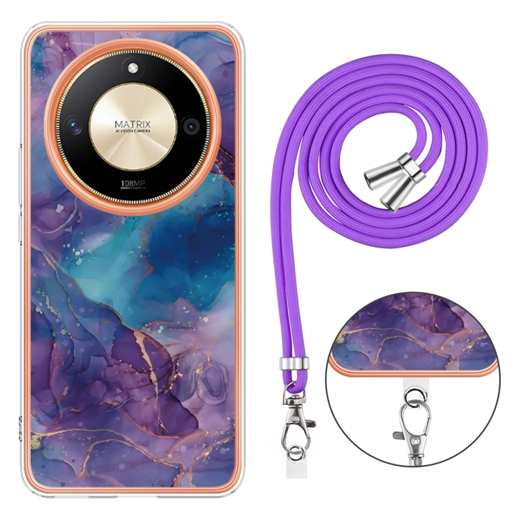Funda para Teléfono Honor X9B con IMD doble cara y Mármol Galvanizado con Cordón (Púrpura)