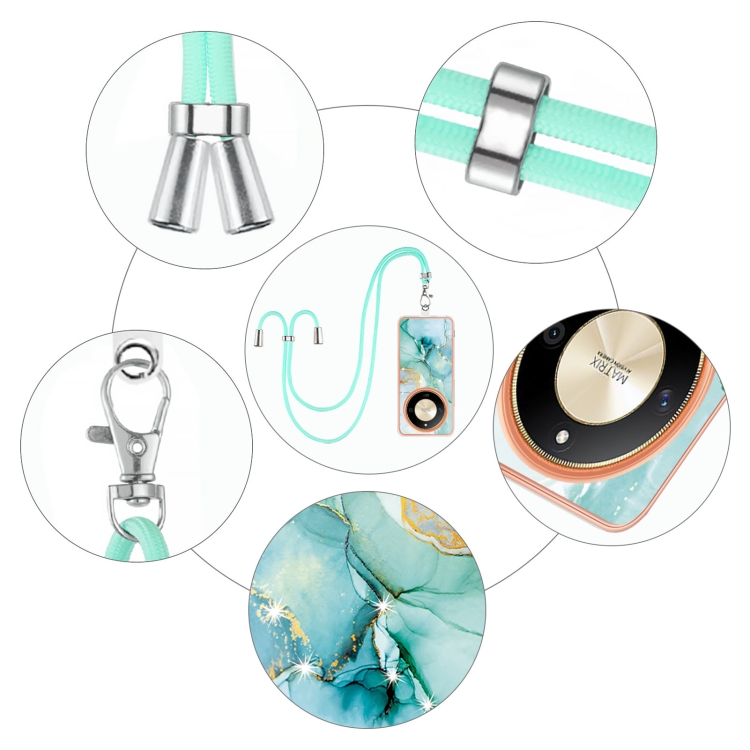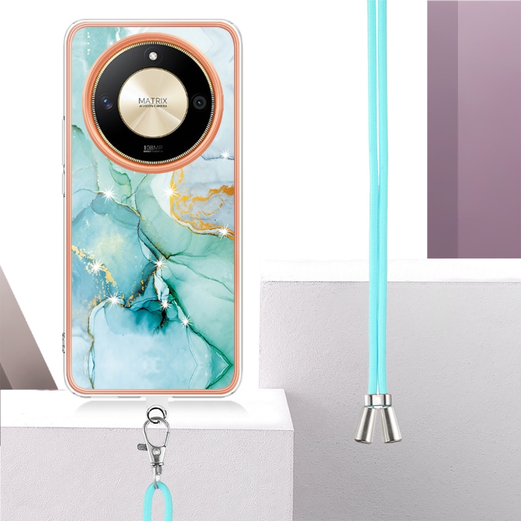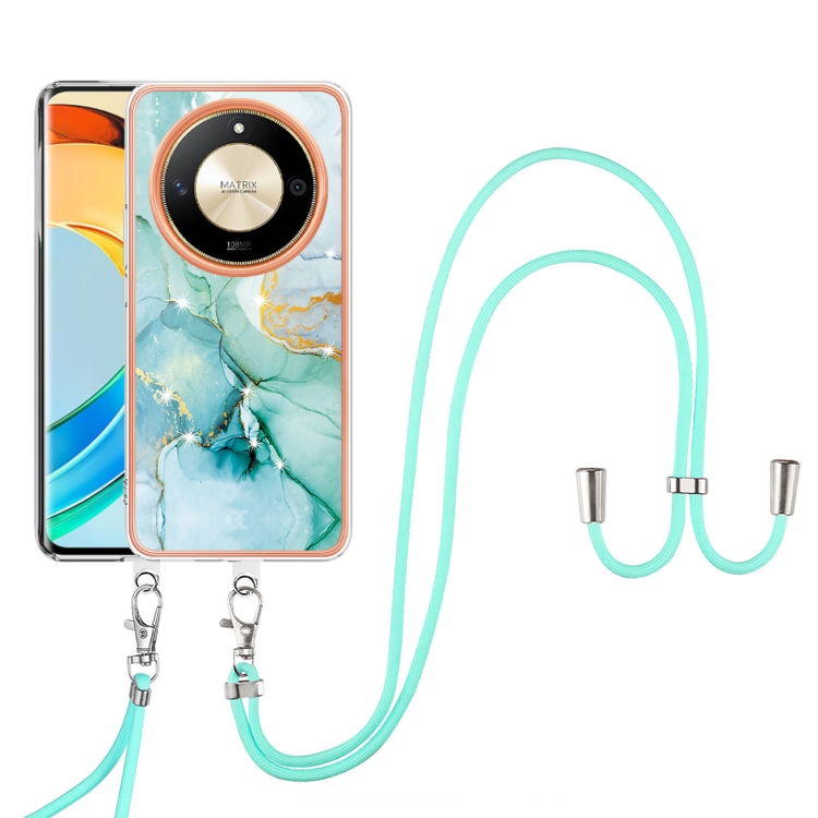 Funda para Teléfono Honor X9B con Imd Doble Cara y Revestimiento Mármol Galvanizado con Cordón (Verde)