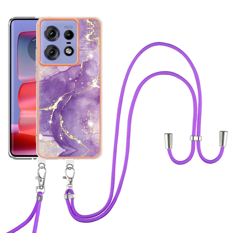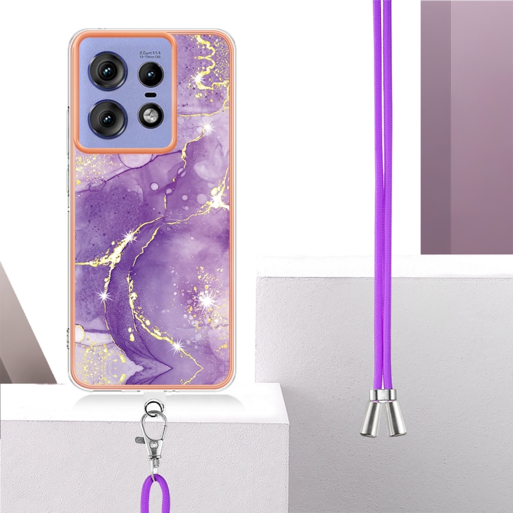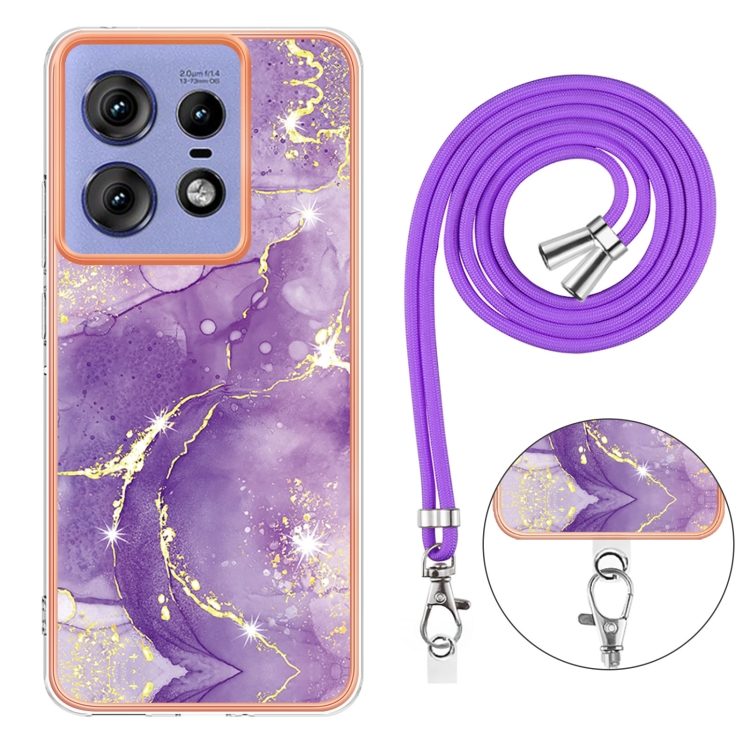 Funda para Teléfono Motorola Edge 50 Pro con Imd Doble Cara y Revestimiento Mármol (Púrpura) con Cordón