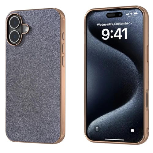 Funda para Teléfono iPhone 16 Plus Marco Galvanizado Purpurina Prueba de Golpes (Negra)