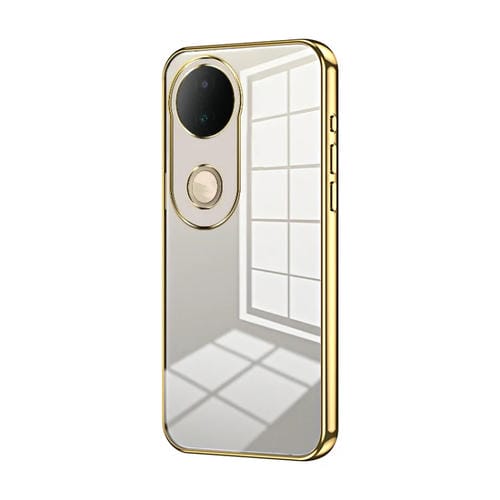 Funda para Teléfono con Orificios Finos y Revestimiento Transparente para Vivo S20 (Dorada)
