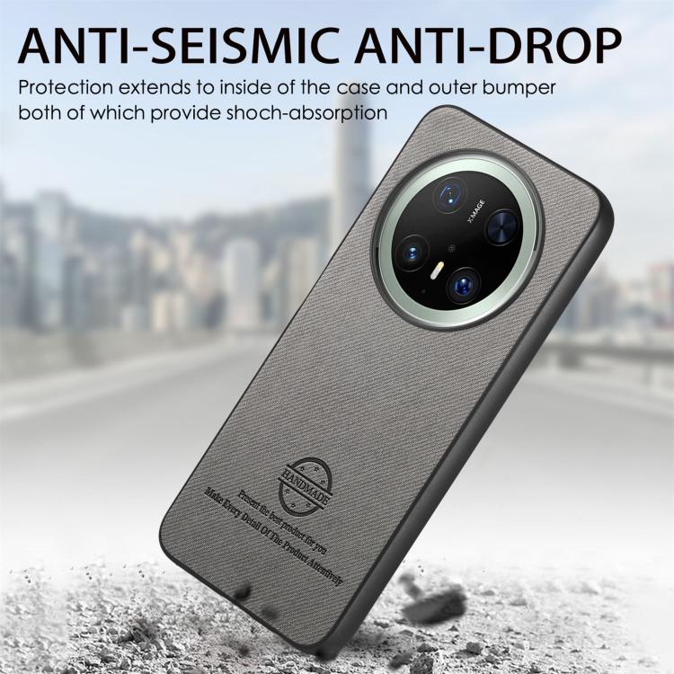 Funda para Teléfono Huawei Mate 70 con Parte Trasera de Piel y Tejido de Sarga (Gris)