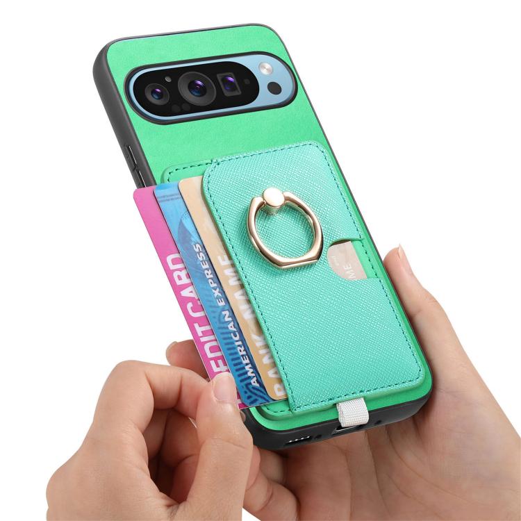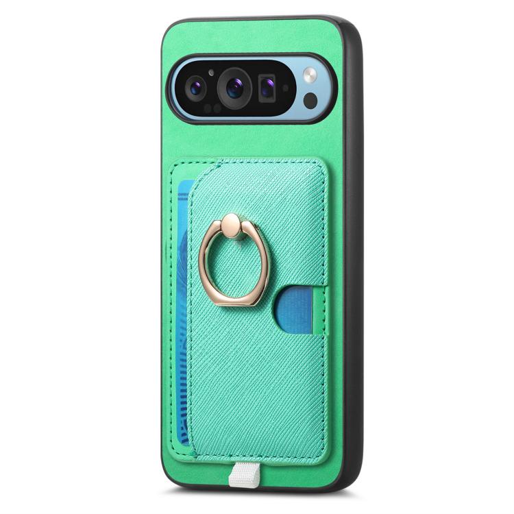 Funda para Teléfono Google Pixel 8A Magsafe con Ranuras para Tarjetas y Anillo Lateral (Verde)