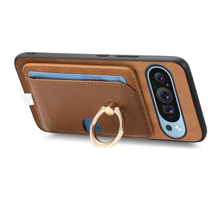 Funda para Teléfono Google Pixel 9 Pro XL Magsafe con Ranuras para Tarjetas y Anillo Lateral (Marrón)
