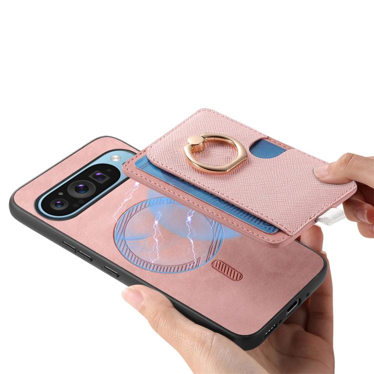 Funda para Google Pixel 9 Pro XL con Ranuras para Tarjetas y Anillo Lateral (Rosa)