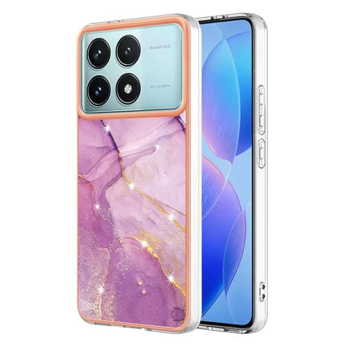 Funda para Teléfono con Revestimiento de Mármol Galvanizado de Doble Cara Imd para Xiaomi Poco F6 Pro 5G (Morado 001)